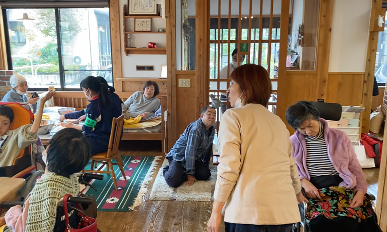 そこには、介護「する側」「される側」という分け隔てが無く、皆んなそれぞれが自分に出来ることをやって周りを助ける、介護施設っぽさのない、ただ賑やかに共同生活を日中送っているというイメージです。