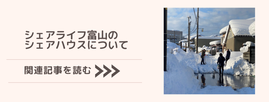 シェアライフ富山のシェアハウスは、ただ広い家に安く住むことを目的とせず、入居者皆が共同生活を楽しみたい、新しい出会いや集まって暮らす中で刺激を得たい、というシェアメイトたちが集まっています。