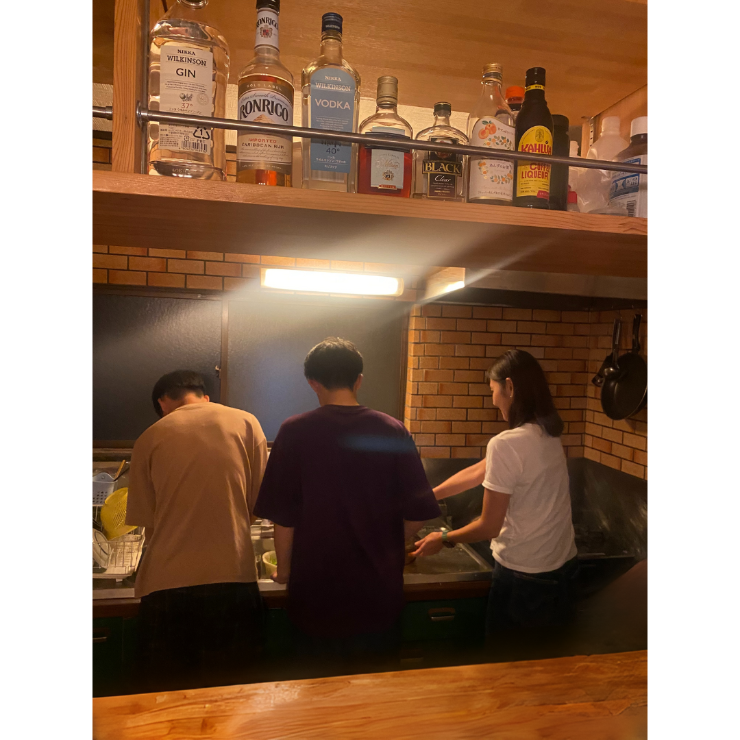 こぢんまりしたカフェ風カウンターキッチンは、自然と集まり語り合いたくなる不思議な空間。
