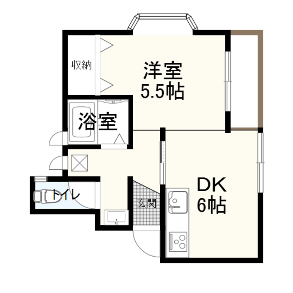 | 間取り | 1DK(DK6・洋室5.5) | 専有面積 | 30.20㎡ | ||