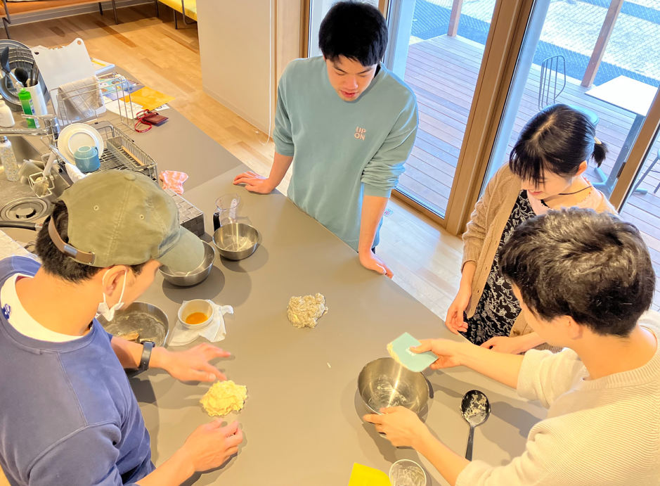 生活面では、北欧のコレクティブハウスではお馴染みの「コモンミール」をSCOP風にアレンジして実施しています。